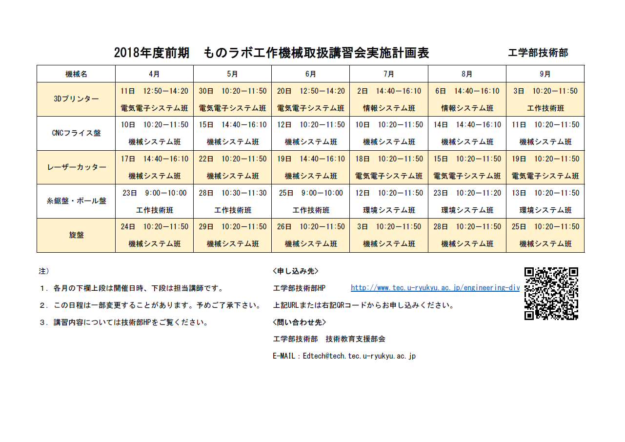 また、前期分の日程もポスターに掲示されていますので、ご確認下さい。