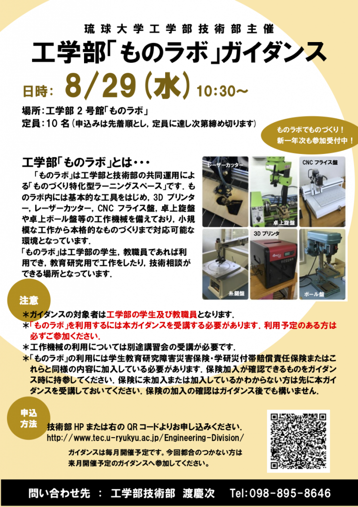 ものラボガイダンス8月分のご案内です。 ものラボを利用するためには必須のガイダンスになりますので、興味のある方は是非受講して下さい。