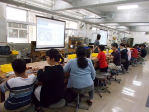 今回小学生高学年向けで新たに実施されたこの講座は,実際の第二種電気工事士試験で出題された過去問題を作製するというものでした。電気の流れる仕組みを学び,電気工事用工具を使用して,7色に光るLEDを点灯させる回路を作りました。電気工事の体験や講座を通して,ものづくりの楽しさ,学ぶことの大切さを伝えています。完成後のアンケートでは,「おとなになったらやくにたつと思ったから」受講した,また保護者からのアンケートでは「子は10才ですが,工学部に進みたいといっています」等コメントをいただきました。今後とも夏休み工作教室を推進していきたいと思います。