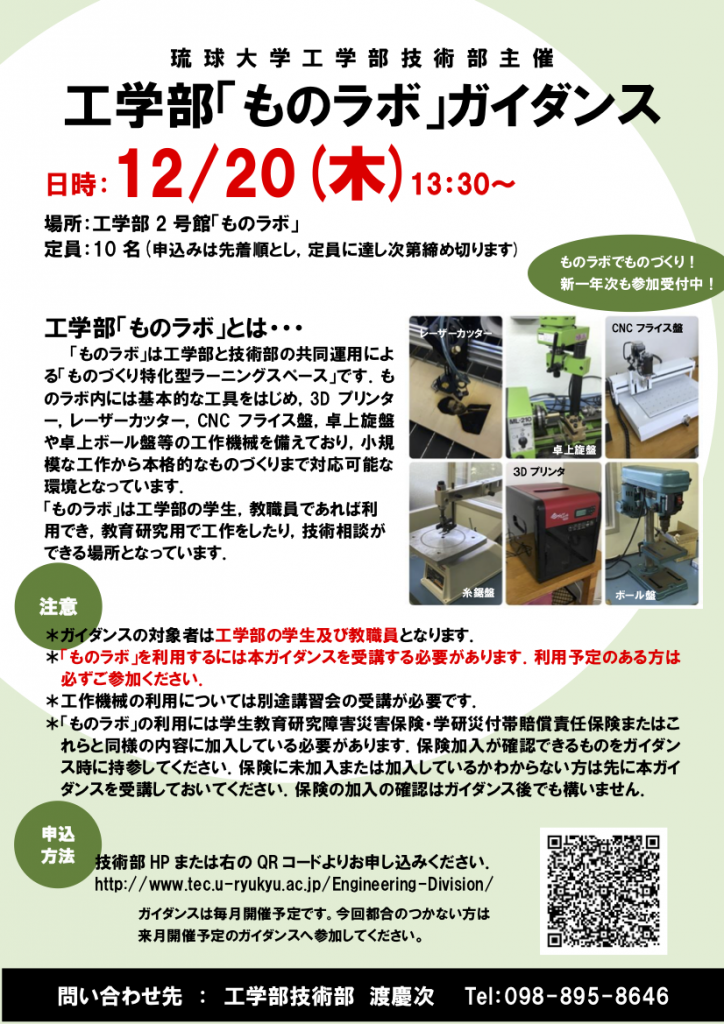 ものラボを利用するためには必須のガイダンスになりますので、興味のある方は是非受講して下さい。