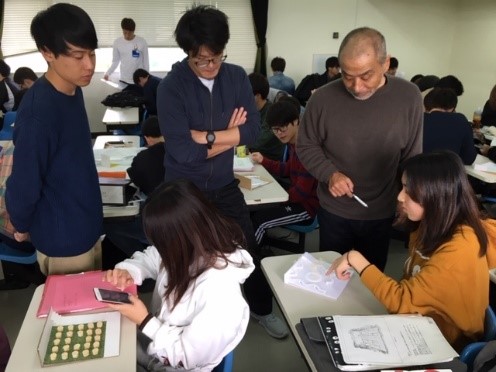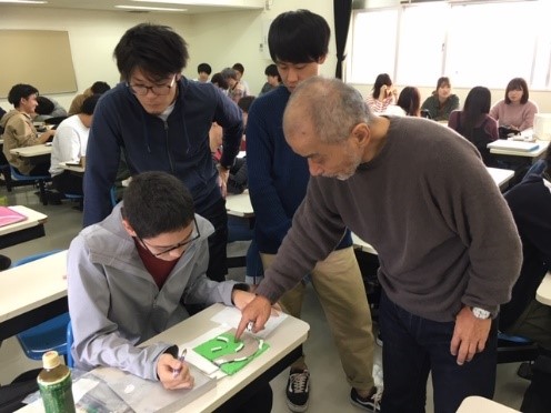 2018年度の後学期は、社会基盤デザインコース1年次学生53名を対象に、火曜日3時限に開講されている「デザイン基礎」の教育支援を行っている。具体的には、JW-CADの基本操作の指導や課題のチェックに加え最終課題であるポケットパークデザインに関する技術支援を行っている。下記に示している授業シラバスに対する教育支援は、教員1名、技術職員2名、TA1名の計4名で分担することで実施している。