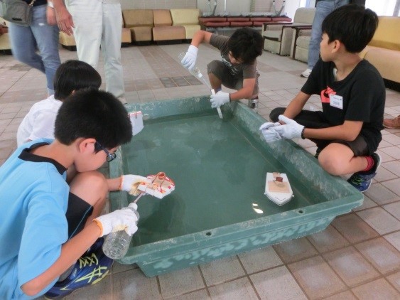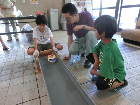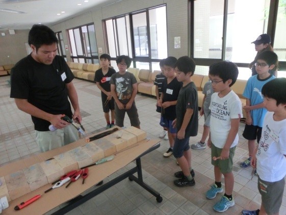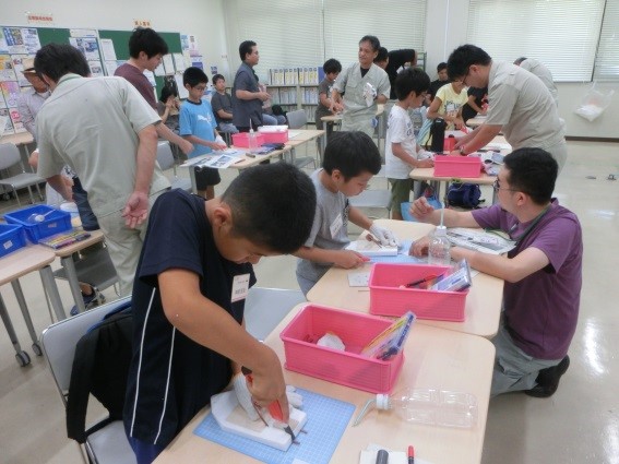 募集14人に13人の応募がありました。3人の欠席があり10人での開催になり、講師8人で対応しました。エンジン部の製作では、パイプを曲げるのにほとんどの児童が苦戦していましたが、途中で熱処理(焼き鈍し)を行うことで、全員曲げることができました。発泡スチロールの船体の加工は、ケガが無いようにカッターナイフの角度を注意しながらカットしてエンジンを取り付け、みんな思い思いの色を塗って完成する事ができました。簡易プールでの、走行では児童より親御さんの方が熱心に船を調整している場面もありほのぼのとした時間を過ごすことができました。 今後の課題として、製作工程を見直して時間を短縮し、走行(遊ぶ)時間を長く確保したいと思います。