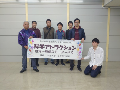 2月1日(土)宜野湾市立中央公民館で開催された宜野湾市生涯学習フェスティバルにて「世界一簡単なモーターづくり」と題したものづくり講座を行いました。受講者はスタッフから製作手順やモーターが回る原理の説明を受けながら、うまくモーターが回るよう試行錯誤し、一生懸命に製作している様子でした。ひとたびモーターが回りはじめると受講者からは驚きや喜びに満ちた声が上がりました。ひととおり説明が終了した後もオリジナルの形をしたモーターを製作する受講者や、さらに早くモーターが回るよう調整している受講者も多くみられ、各々が楽しみながら製作している様子がうかがえました。