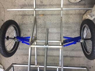 ・子供用自転車を切断し、車体へ溶接し後輪として使用する。