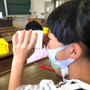 ミラクル万華鏡は小学校低学年向けに開講している人気の公開講座です。「光は波である」という性質を利用して偏光板とセロハンテープを使ってミラクル万華鏡を製作しました。完成した万華鏡を覗き込んだ子供達は、自分の貼ったセロハンテープがカラフルな模様となっていることに非常に驚いていました。 また、セロハンテープが色づく原理について説明した際は、保護者を含めた参加者全員が理解しようと真剣に聞いてくれていました。