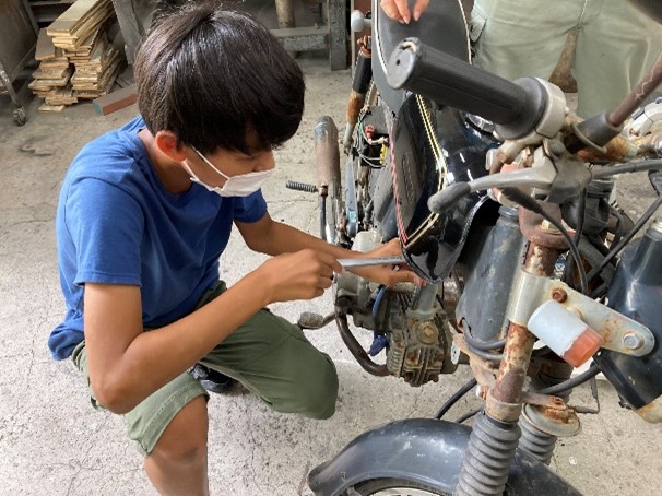 受講者たちは、初めて使う工具や手を油まみれにさせながら行う分解作業に手こずる場面もありましたが、保護者からも応援やアドバイスがあり、各自が頑張って組み立てたエンジンが始動した時は、とても嬉しそうでした。