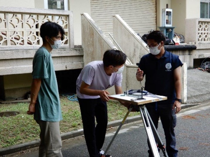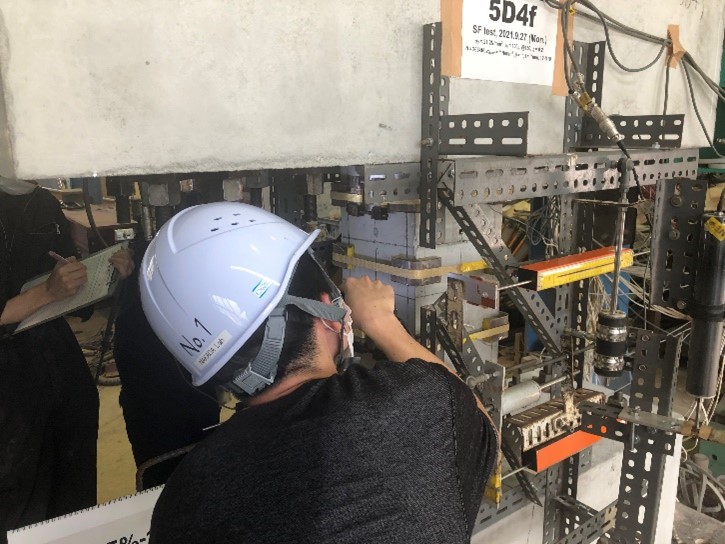 測量学実習実施風景① 測量学実習実施風景② コンクリート工学学生実験の様子 大型コンクリート試験体水平加力実験(研究支援)の様子