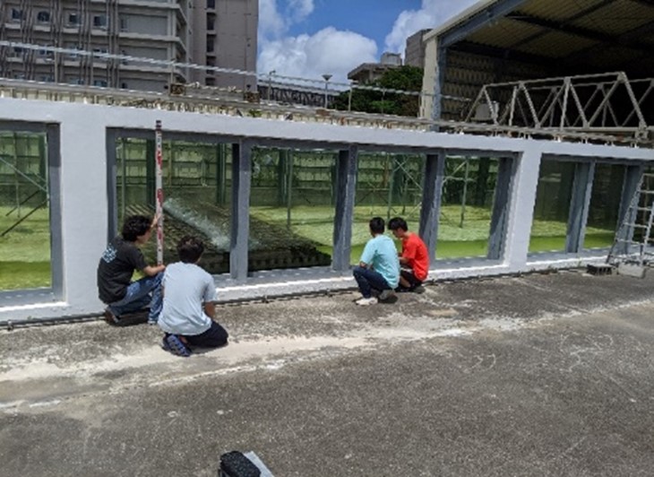 ①学生実験(コンクリート工学、水理学、地盤工学、建築環境工学、建築基礎構造、建築材料構造)・
