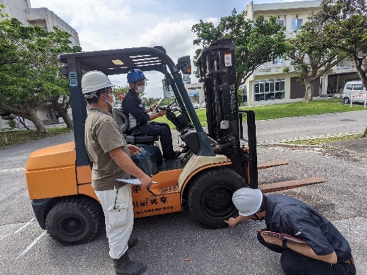 ホイスト式天井クレーン及びフォークリフト定期自主点検の様子① ホイスト式天井クレーン及びフォークリフト定期自主点検の様子 ②